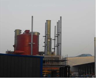 废气风机之后是一台液滴分离器,在这里将气体和液体分离。含有微量HCL的炉气在洗涤塔的下部用漂洗水循环洗涤,在洗涤塔的上部用脱盐水循环洗涤。